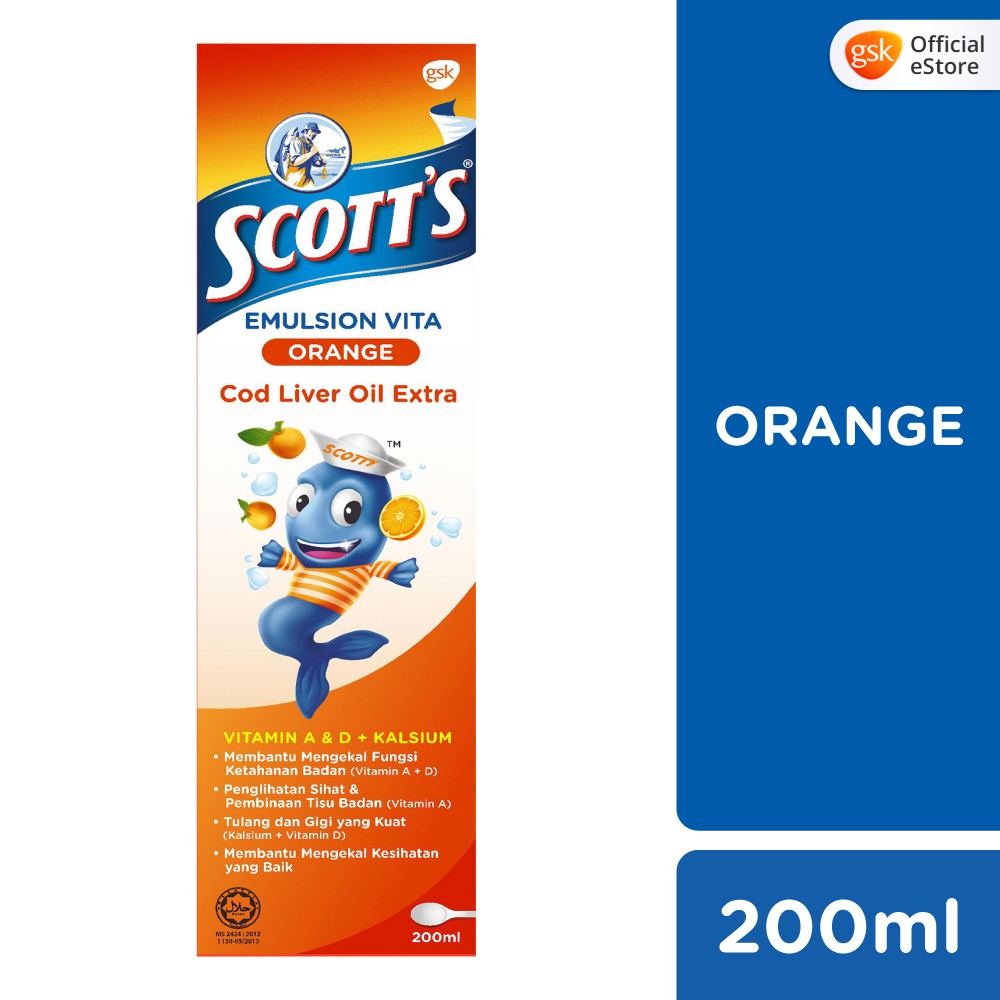 Scotts Emulsion Cod Liver Oil Vitamin A D Calcium 2 Flavours 200ml