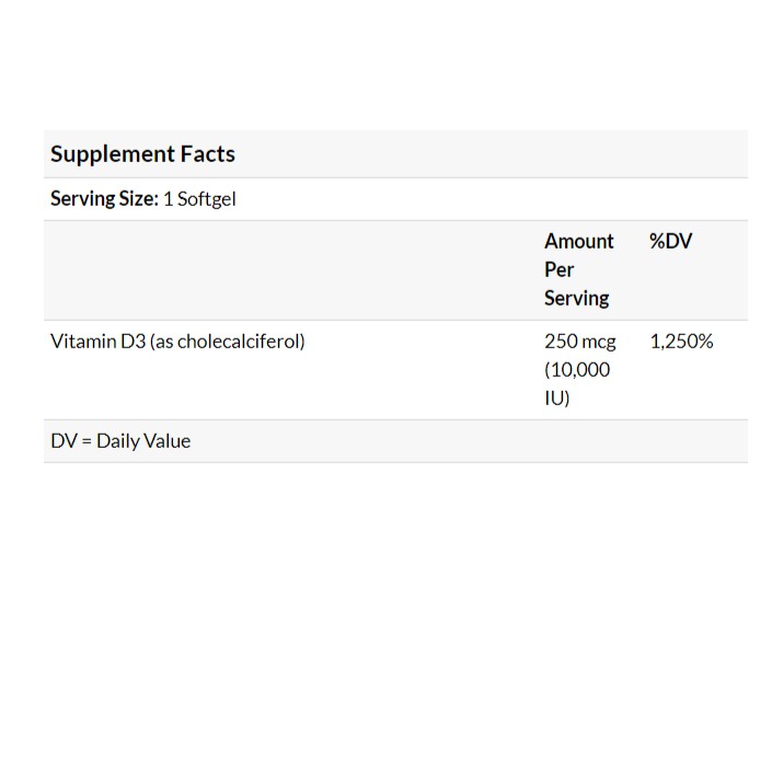 Vitamin D3 Cholecalciferol 250 Mcg 10 000 Iu Softgels 120 Count